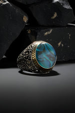Discover the iridescent beauty of genuine Mother of Pearl. This ring, crafted in polished 925 sterling silver, reflects light with a natural shimmer. An elegant choice for those who love ocean-inspired aesthetics.