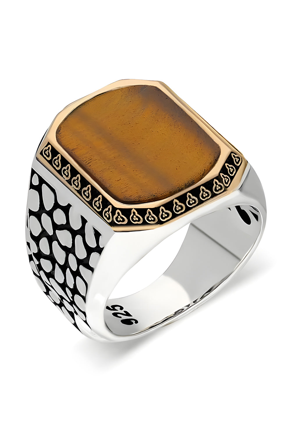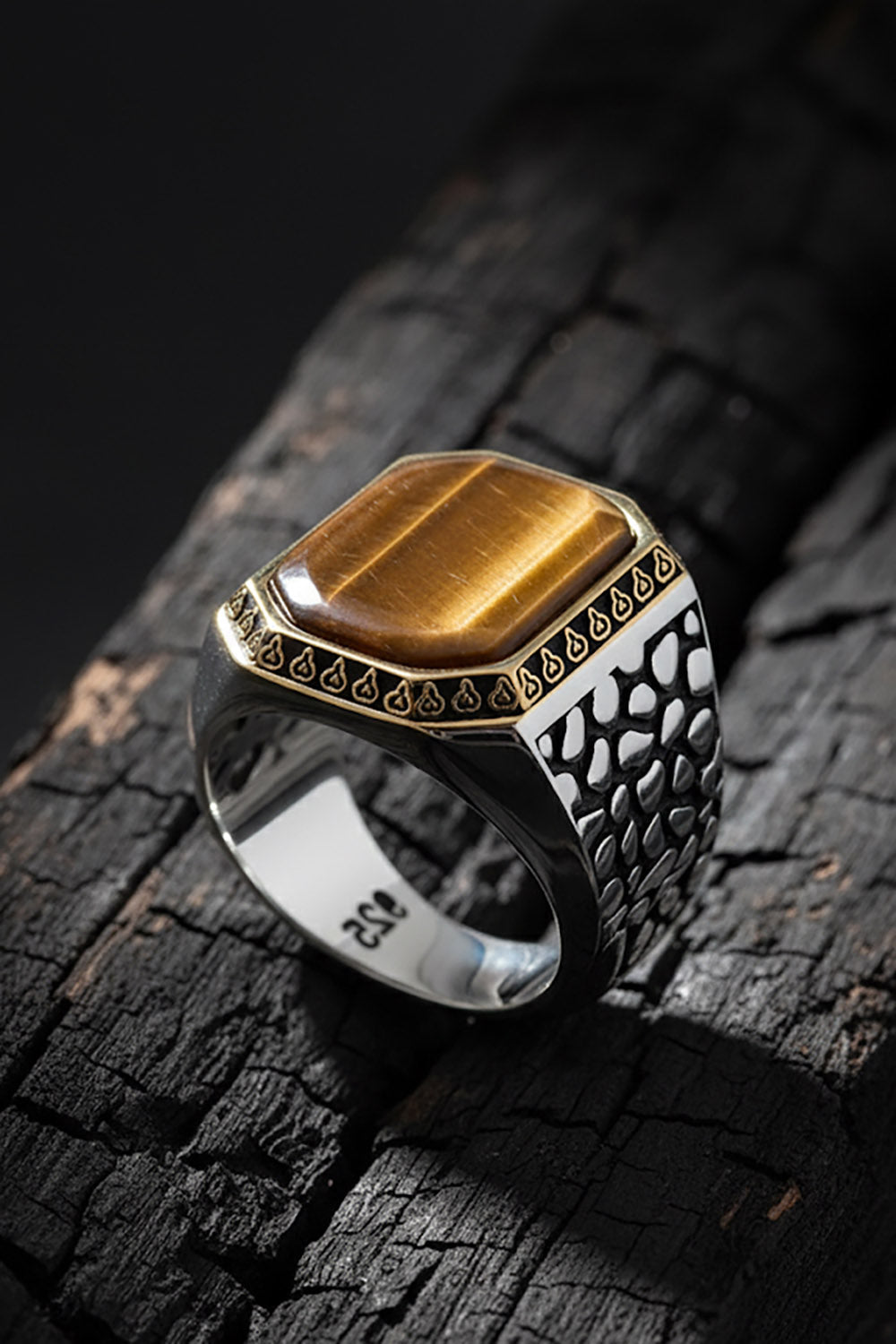 Crafted from genuine 925 sterling silver, this Tiger Eye Ring showcases the stone’s striking golden-brown bands. Each piece is handcrafted with precision, making every ring unique. Tiger Eye is believed to bring focus, courage, and clarity. an ideal choice for men who appreciate strength and confidence in their jewelry.
