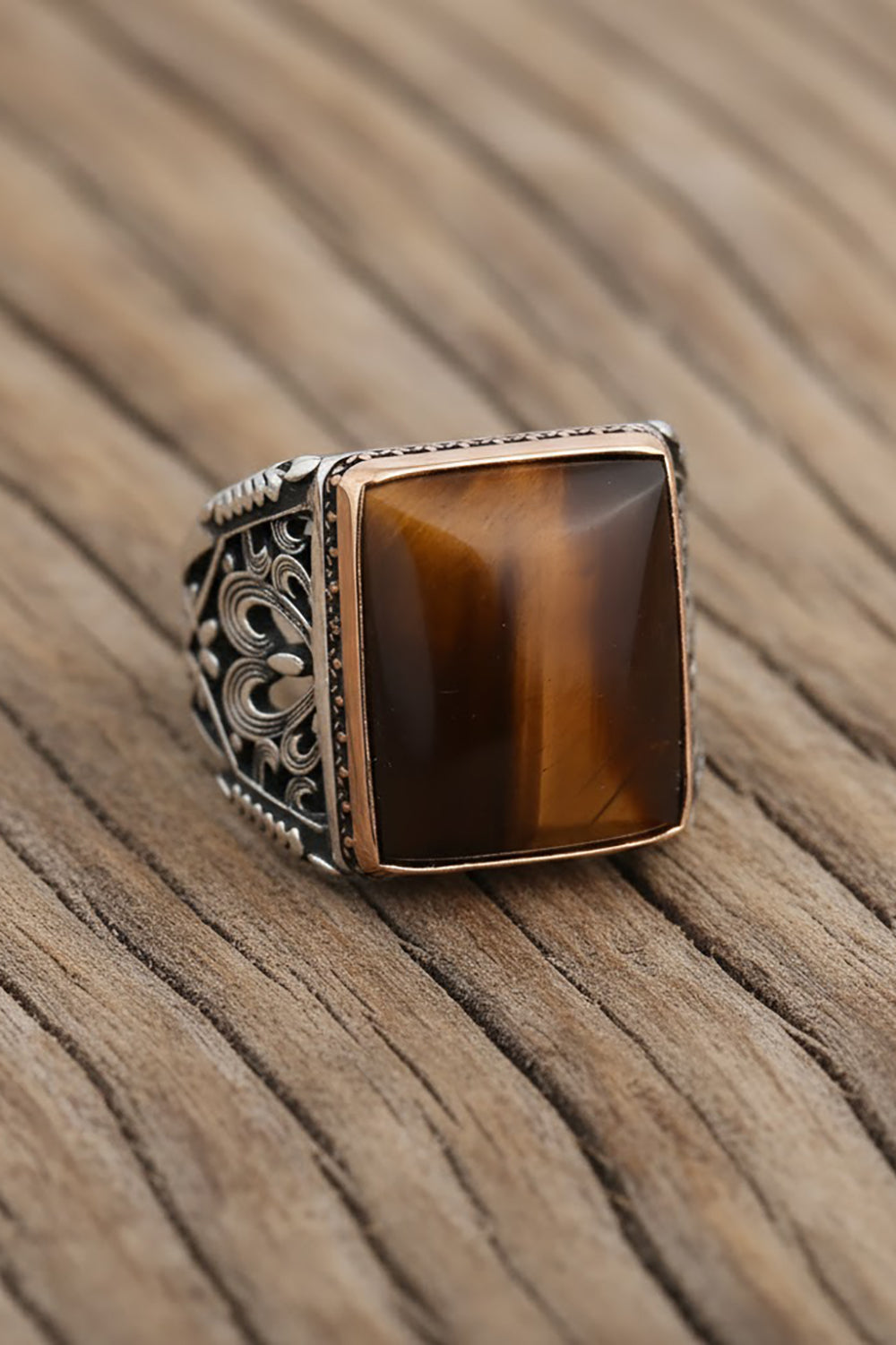 Crafted from genuine 925 sterling silver, this Tiger Eye Ring showcases the stone’s striking golden-brown bands. Each piece is handcrafted with precision, making every ring unique. Tiger Eye is believed to bring focus, courage, and clarity. an ideal choice for men who appreciate strength and confidence in their jewelry.