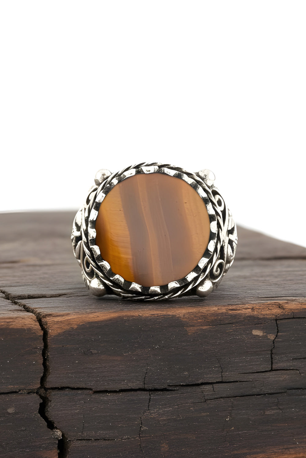 Crafted from genuine 925 sterling silver, this Tiger Eye Ring showcases the stone’s striking golden-brown bands. Each piece is handcrafted with precision, making every ring unique. Tiger Eye is believed to bring focus, courage, and clarity. an ideal choice for men who appreciate strength and confidence in their jewelry.