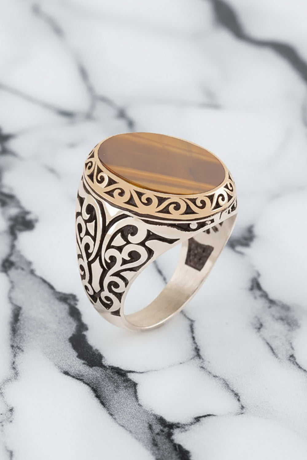 Crafted from genuine 925 sterling silver, this Tiger Eye Ring showcases the stone’s striking golden-brown bands. Each piece is handcrafted with precision, making every ring unique. Tiger Eye is believed to bring focus, courage, and clarity. an ideal choice for men who appreciate strength and confidence in their jewelry.
