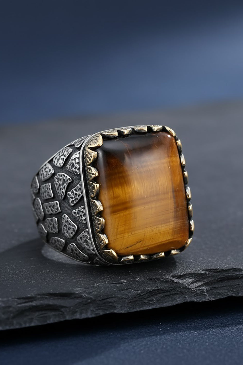 Crafted from genuine 925 sterling silver, this Tiger Eye Ring showcases the stone’s striking golden-brown bands. Each piece is handcrafted with precision, making every ring unique. Tiger Eye is believed to bring focus, courage, and clarity. an ideal choice for men who appreciate strength and confidence in their jewelry.